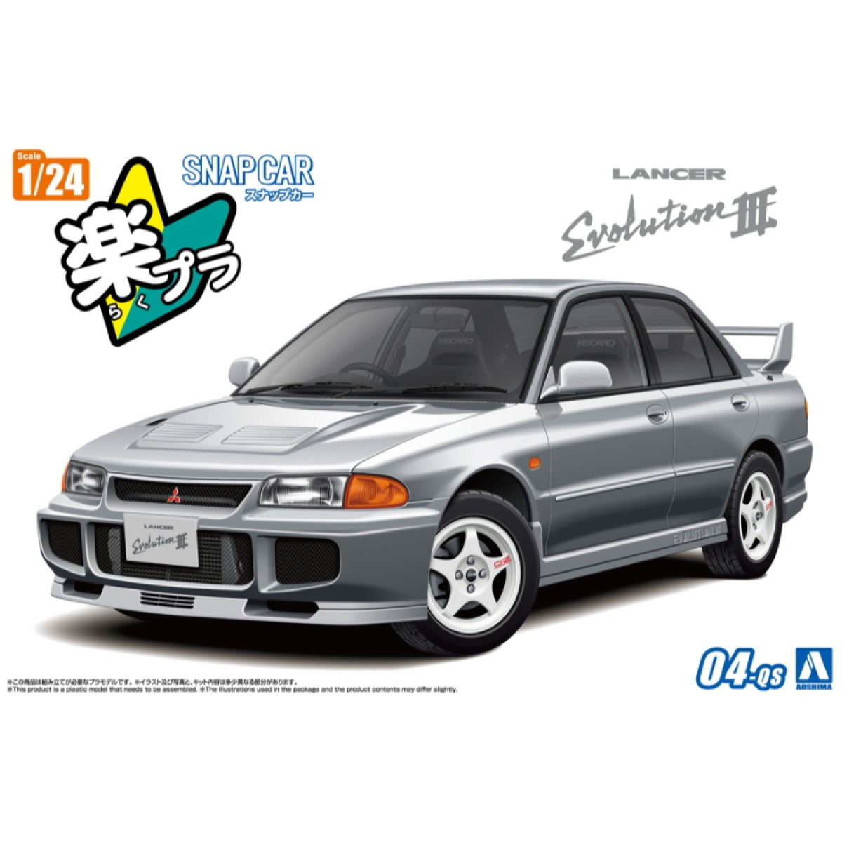 Aoshima Model Kit 1:24 CE9A Lancer GSR Evolution III 1995 Queens Silver Snap Kit