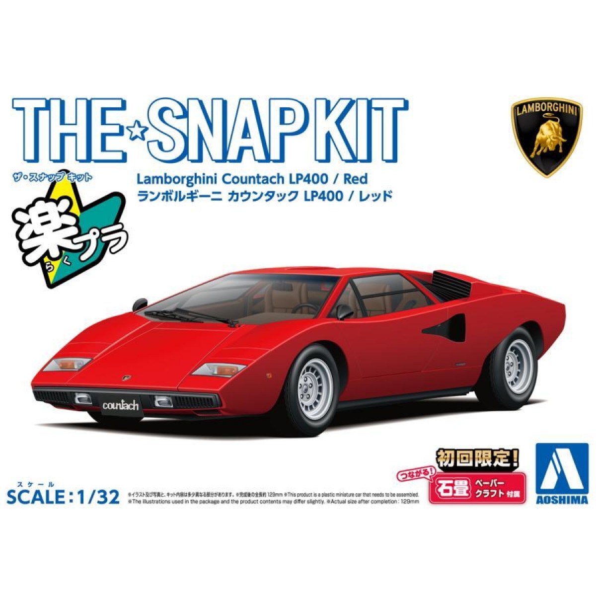 Aoshima Model Kit 1:32 Lamborghini Countach LP400 Red Snap Kit