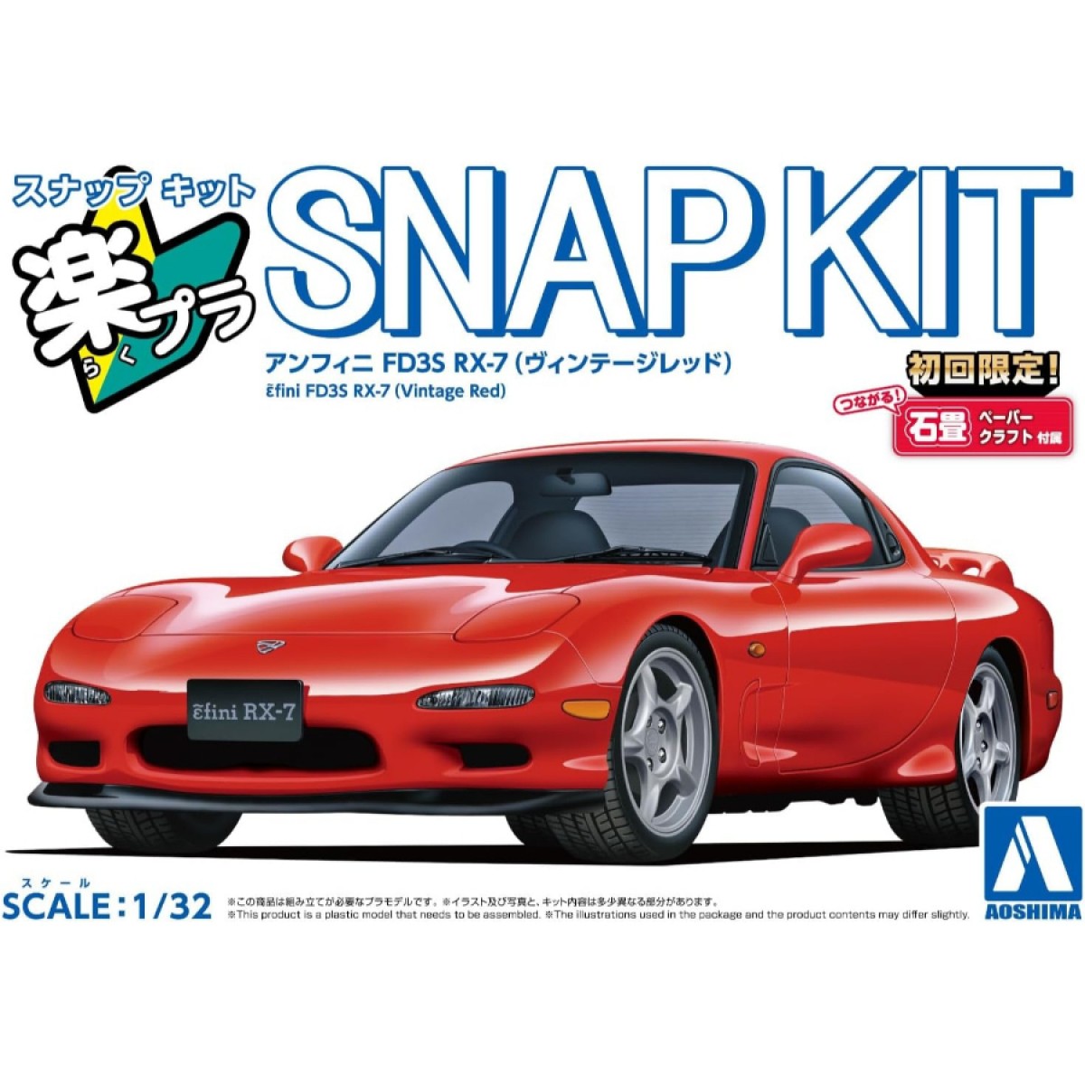 Aoshima Model Kit 1:32 Mazda FD3S RX-7 Vintage Red Snap Kit