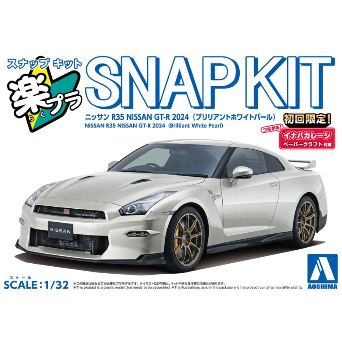Aoshima Model Kit 1:32 Nissan R35 Nissan GT-R 2024 Brilliant White Pearl Snap Kit