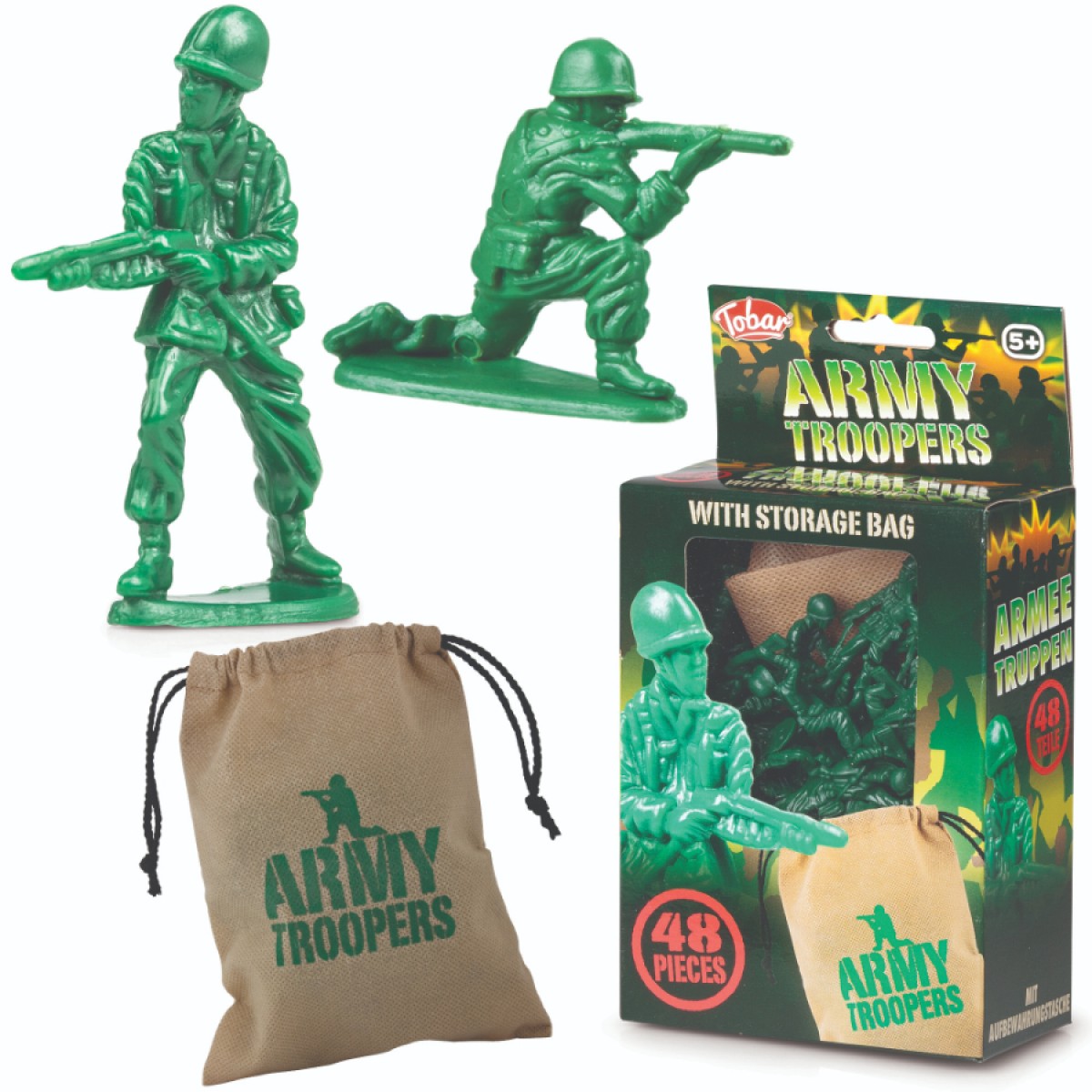 Bring the battlefield to life with the Army Troopers set, featuring 48 green plastic soldiers ready for action. Each figure stands approximately 5.5 cm tall and is finely detailed with classic military gear in dynamic poses that spark hours of imaginative play.