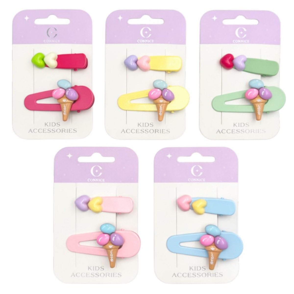 Kids Hair Clips Ice Cream & Heart 2 Pack Assorted