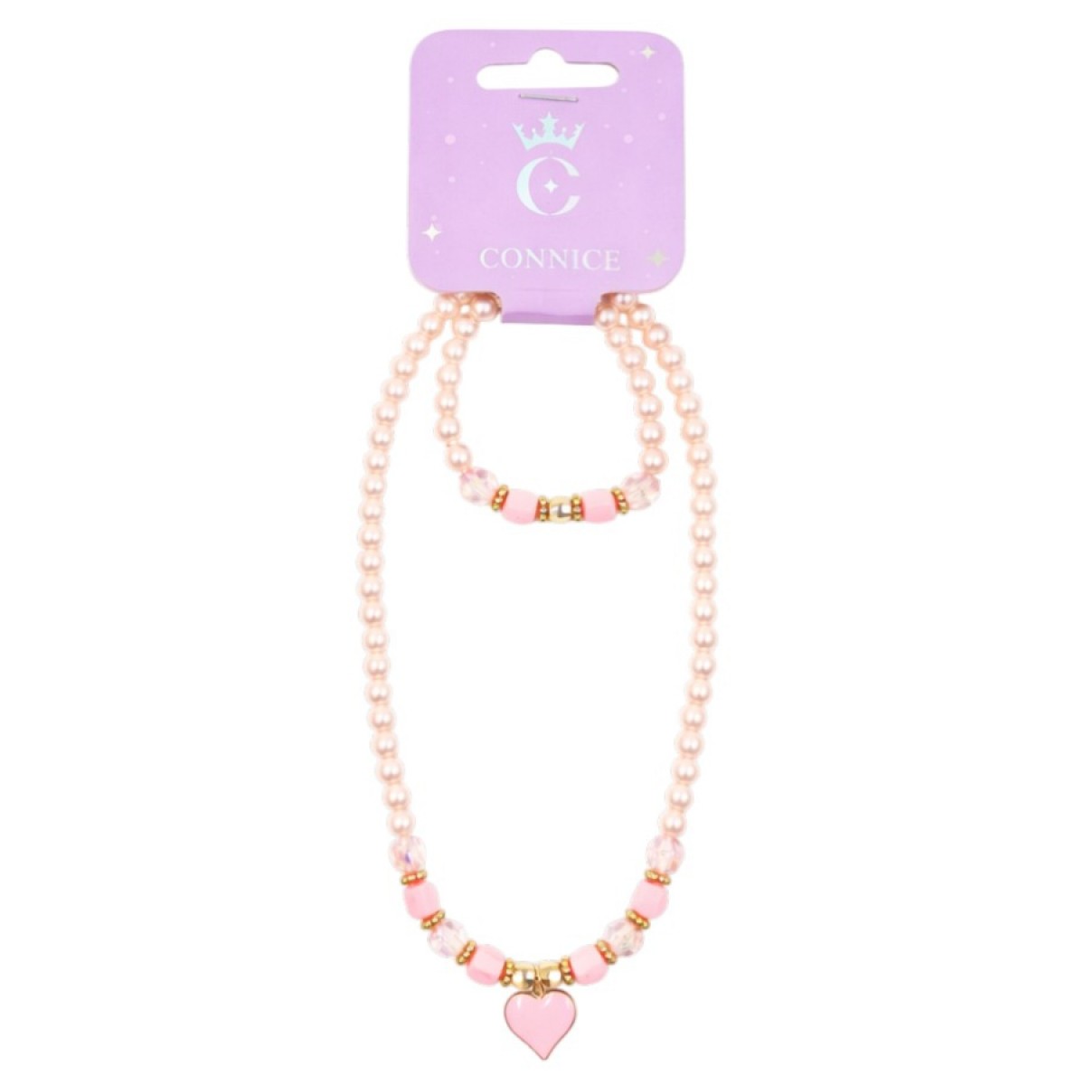 Kids Necklace & Bracelet Set Light Pink Dream Sweet Heart Pearl